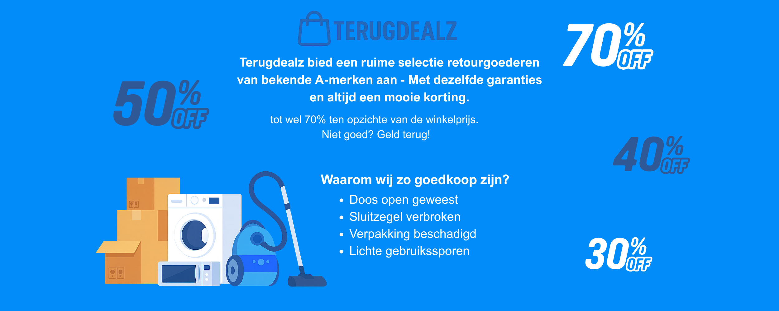 Bij Terugdealz vind je zowelvolledig nieuwe productenals artikelen die eerder zijn geretourneerd.