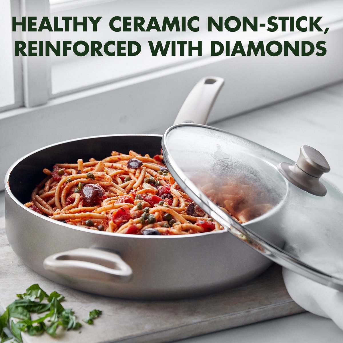 Greenpan Cambridge Bronze Keramische Hapjespan met deksel Ø28cm - 4.2L – PFAS-vrij – Inductie Hapjespan – Ovenbestendig tot 160°C – Vaatwasserbestendig – Snelle opwarming – Koudgrepen – Brons
