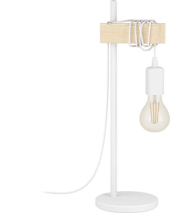 EGLO Townshend - Tafellamp - 1-lichts - E27 - Wit/Eikenhout tweede kans