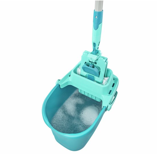 De bodemplaat met speciale cleanblade-reinigingstextuur met achter elkaar geplaatste plaatjes vormt met vloerdoek Micro Duo een innovatieve combinatie die het vuil effectief losmaakt en direct opneemt in de microvezels van de vloerdoek. De Micro Duo vloerdoek met 2-vezels-structuur, met rijen langere borstelhaartjes, zorgt bovendien voor een hygiënisch grondige reiniging en verwijdert tot 99% van de virussen en bacteriën*. Tot de set behoort ook de praktische emmer met nuttige inhoud van 6 liter en de uitwringzeef die tot 18% beter uitwringt**. Perfect voor gecontroleerd uitwringen van de vloerdoek, zonder bukken en zonder vies water aan je handen. Ook de bodemplaat ontgrendelen gaat heel gemakkelijk, met de grote voetknop met gepatenteerde ontgrendeling. Met de wisbreedte van 33 cm maak je ook grotere vloeren lekker snel schoon. De werklengte van de vloerwisser is met 148 cm ideaal voor vloerwissen zonder bukken. Ook moeilijk bereikbare plekken, zoals onder meubels, maak je gemakkelijk schoon, dankzij het 360°-draaigewicht en de plat neer te klappen steel. Klaar met poetsen? De vloerdoek met insteekranden en klittenbandbevestiging is gemakkelijk van de vloerwisser te verwijderen en net zo simpel weer te bevestigen. De emmer heeft een handige tuit, voor leeggieten zonder knoeien. En daarna is de compacte emmer handig op te bergen. Op de stalen steel met Click-systeem passen veel schoonmaaktools en wissers van Leifheit, voor schoonmaken van vloeren en oppervlakken. Als je een keertje meer water nodig hebt, kun je de zeef ook verwijderen, en dan heb je een grote poetsemmer met een inhoud van 10 liter.