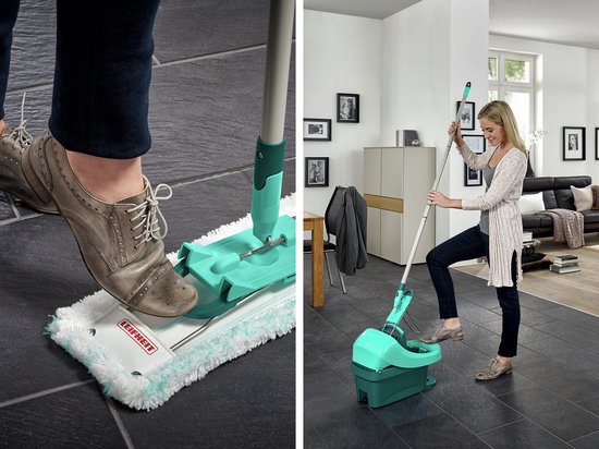 • De Leifheit Profi XL set is de eerste complete oplossing voor zowel nat dweilen als droog stofwissen. De set bevat een vloerdoekpers met wieltjes en voetbediening, waardoor je de doek zonder bukken en zonder natte handen kunt uitpersen. De Profi XL vloerwisser (42 cm) met micro duo doek reinigt hygiënisch en verwijdert tot 99% van virussen en bacteriën*. Dankzij het 360°-gewricht bereik je eenvoudig ook onder meubels. De micro duo doek is tot 400 keer wasbaar op 60°C. Extra inbegrepen: de Duster Static doek voor droog stofwissen, duurzaam wasbaar tot 100 keer.