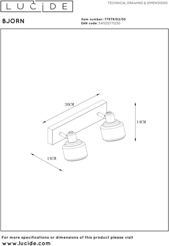 Lucide BJORN - Plafondspot (Plafondlamp) - 2xE14 - Zwart Tweede kans