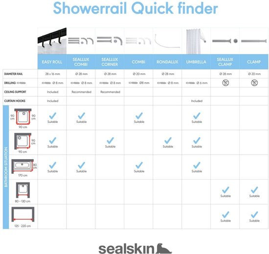• Geschikt voor vrijwel alle soorten douchegordijnringen
