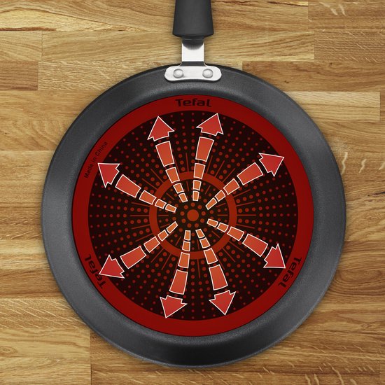 • De Thermo-Signalâ„¢-warmte-indicator verandert van kleur wanneer de pan de ideale temperatuur bereikt om te beginnen met koken