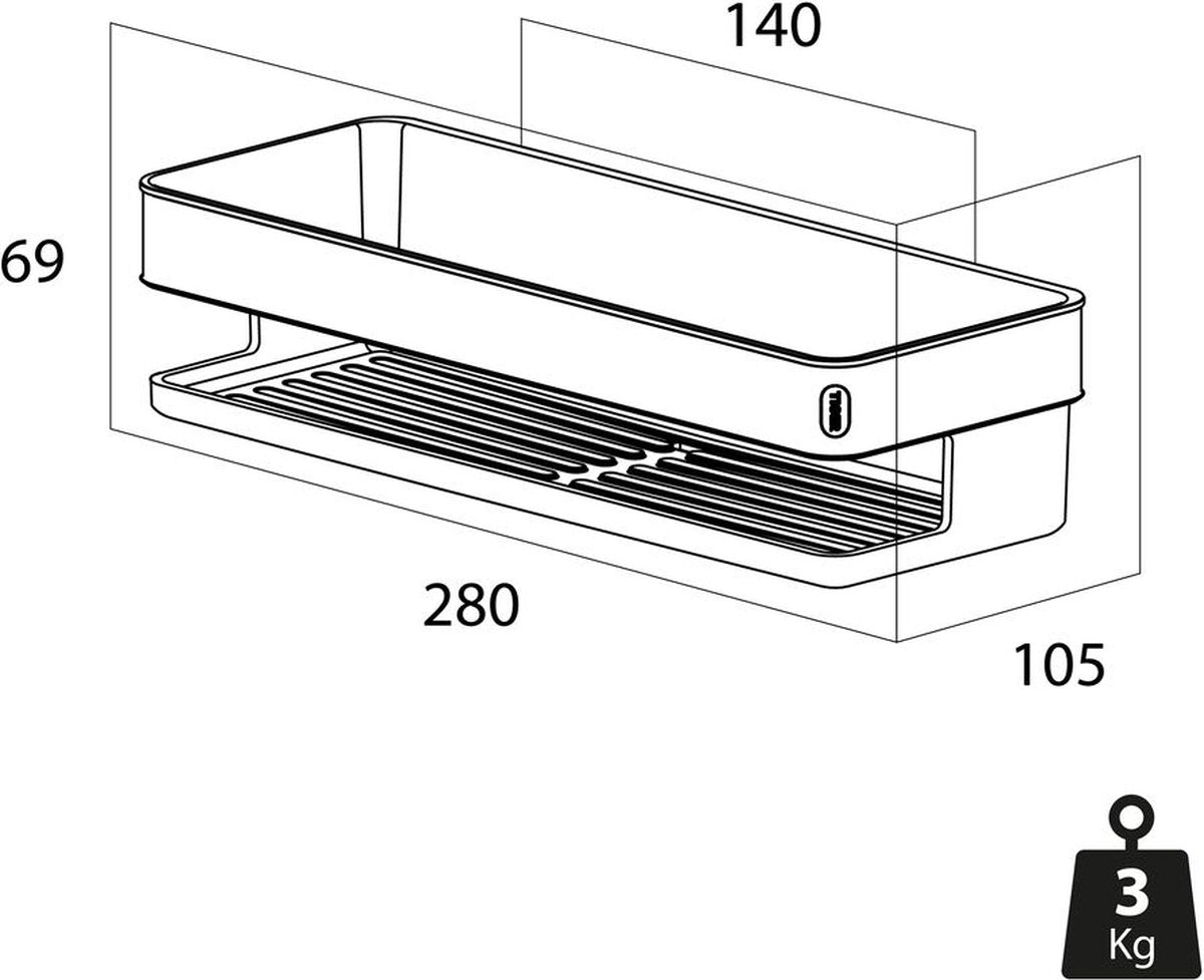 • Gebruiksgemak: dankzij de hoge rand en vlakke bodem blijven de doucheproducten stabiel in de mand staan