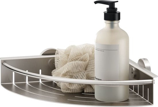 Het Tiger Boston hoek douchemandje uitgevoerd in geborsteld RVS is dé oplossing voor het opbergen van de diverse flacons met shampoo en douchegel in de badkamer. De vlakke bodem en de hoge rand van de douchekorf zorgen ervoor dat de bad- en doucheproducten stevig in het rekje staan. Door de plaatsing van het douchemandje in de hoek wordt de ruimte, in bijvoorbeeld de douchecabine, optimaal benut. Met de bijgeleverde bevestigingsmaterialen is de hoekkorf eenvoudig aan de wand te bevestigen zonder dat deze bevestigingsmaterialen zichtbaar zijn. Naast dit handige en mooie hoek douchemandje bevat de Boston serie tevens een groot aantal aanvullende accessoires voor de badkamer en het toilet. Het hoekdouchmandje maakt optimaal gebruik van de beschikbare ruimte en biedt een stevige oplossing.