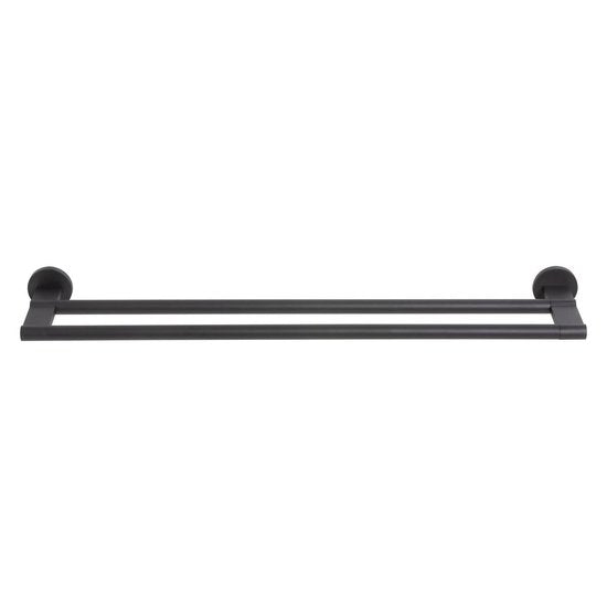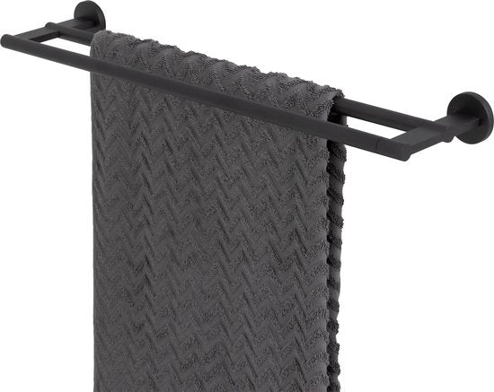 Het dubbele handdoekrek uit de Tiger Noon serie is uitgevoerd in de kleur mat zwart en biedt plaats aan twee handdoeken. De Noon serie bevat tevens een groot aantal aanvullende accessoires voor de badkamer en het toilet in dezelfde stijl.