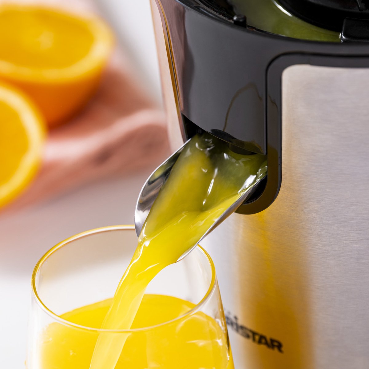 De Tristar citruspers is van alle gemakken voorzien: dankzij de krachtige motor van 85 Watt en de twee perskegels van verschillende formaten die linksom draaien haal je het optimale uit al je citrusvruchten. Daarnaast staat de citruspers stevig op het aanrecht dankzij de anti-slipvoetjes.
