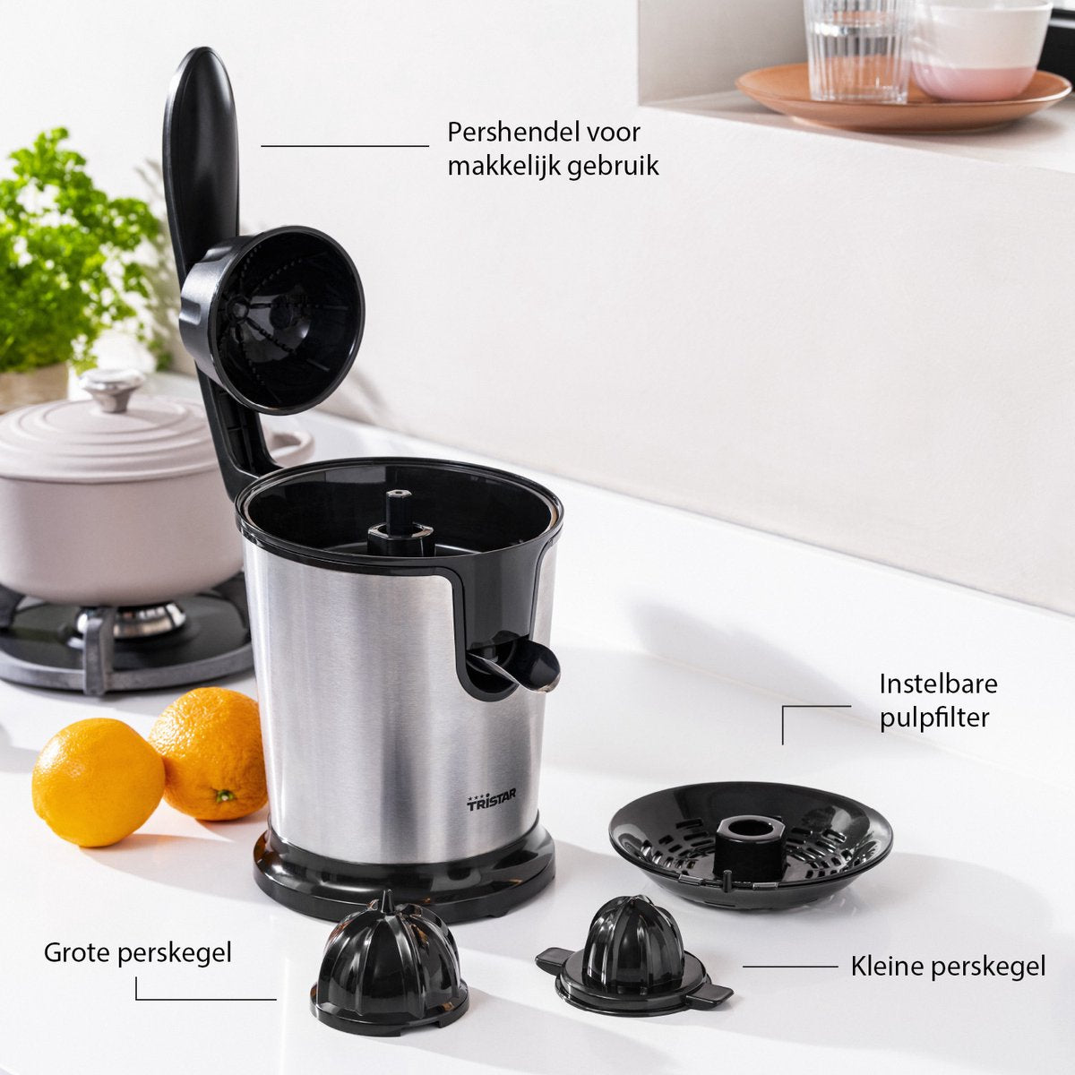 Tristar Citruspers Elektrisch - CP-3002 - 85W - Incl. 2 perskegels, pulpfilter, druppelstop - RVS